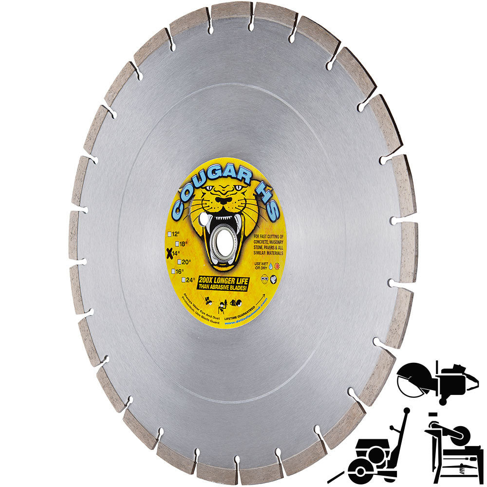 Use for combination wet/dry cutting of cured concrete with light reinforcing as well as masonry, stone and all similar materials. Use with hand-held power saws, masonry saws or walk-behind concrete saws (up to 20 hp).