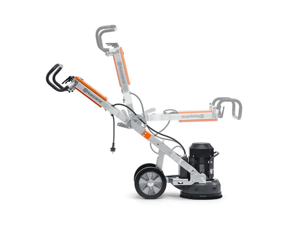 PG 280 is a single disc floor grinder that you can quickly convert for edge grinding on both sides. It efficiently grinds adhesives, paint, epoxy and spackle. With a grinding width of 280 mm it is suitable for small to medium concrete areas. Designed to facilitate an ergonomic work position, it is easy and convenient to use. The machine is light and compact and therefore easy to transport and set-up. In a recent upgrade, the machine was updated to flexibly follow uneven floors and to considerably reduce vibrations.