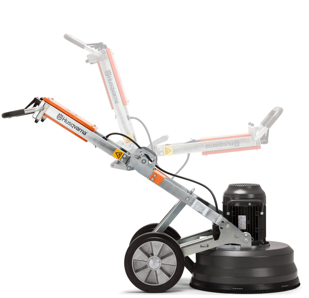 The PG 510 is a planetary floor grinder with three grinding discs and a total grinding width of 20 inch. It is suitable for removing coatings, grinding and polishing concrete, etc. The grinding head on the PG 510 is effectively sealed to keep dust and moisture out. This greatly extends the lifetime of the bearings and belts. The PG 510 is ideal as a rental machine and suitable for both professional and semi-professional work. Quick-release couplings allow the grinding head to be separated from the chassis which can then be easily folded for transport. The grinder also has a digital hour meter.